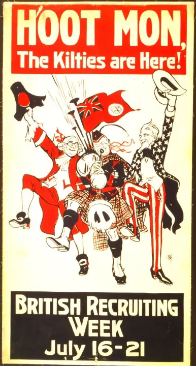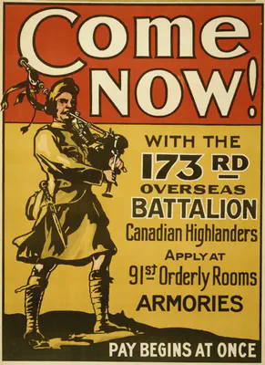 I have several posters from the “Great War” which highlights the Canadian 173rd Battalion, Canadian 73rd Battalion, 91st Highlanders and other Kilted Soldiers.